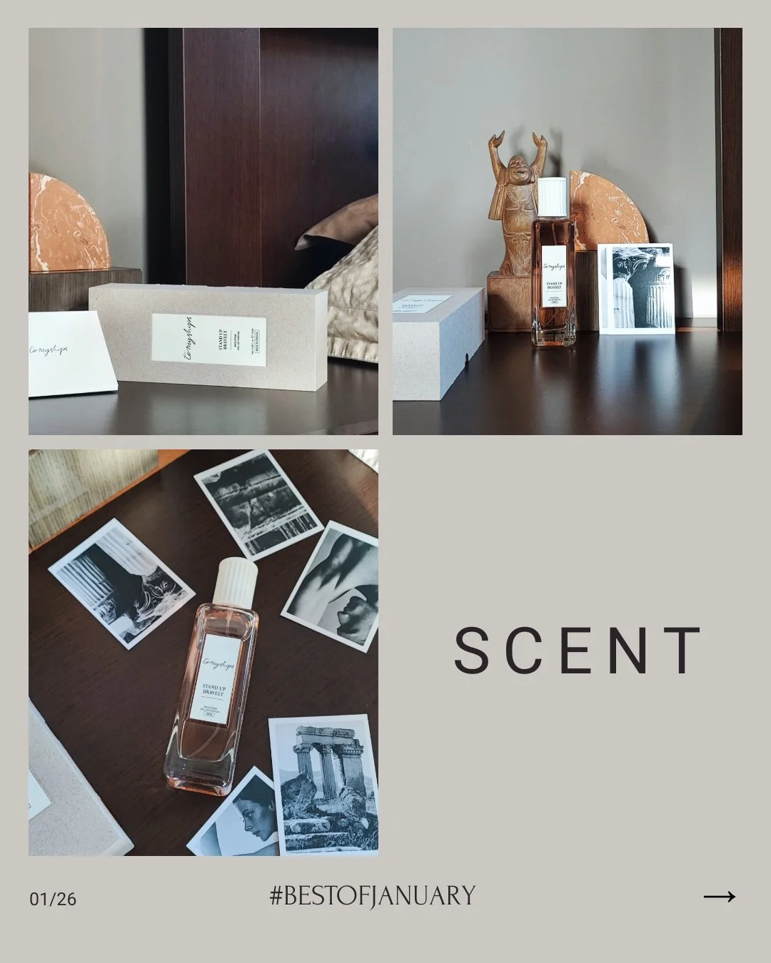 Stand Up Bravely nowej w Polsce marki To My Ships trafił do mnie w momencie, w którym zapachy przestały być oczywistością. Nie testowałem go na skórze. Najpierw poczułem go na bibule w paczce, potem — bardzo ostrożnie — rozpylałem w powietrzu, w sypialni. Jakby to był zapach do oswojenia, a nie do sprawdzenia. Bez presji, bez „ile godzin trzyma”, bez klasycznego start–serce–baza. Raczej obecność niż projekcja. I to było zaskakująco komfortowe. To zapach prostolinijny i bezpretensjonalny. Cytrusowa świeżość otwarcia — bergamotka, która pachnie tu lekko grejpfrutowo — szybko łączy się z wyraźną aromatycznością. Majeranek, składnik rzadko spotykany w perfumach, nadaje całości ziołowego charakteru i przyciąga uwagę właśnie swoją nieoczywistością. Jest w tym zapachu coś bardzo „porannego”: czystość, klarowność, spokój. Widzę go jako idealne domknięcie porannej toalety — tym bardziej że w tej samej linii zapachowej znajdziemy też żel pod prysznic i dezodorant. To nie jest zapach, który chce grać pierwsze skrzypce. On raczej porządkuje przestrzeń wokół.