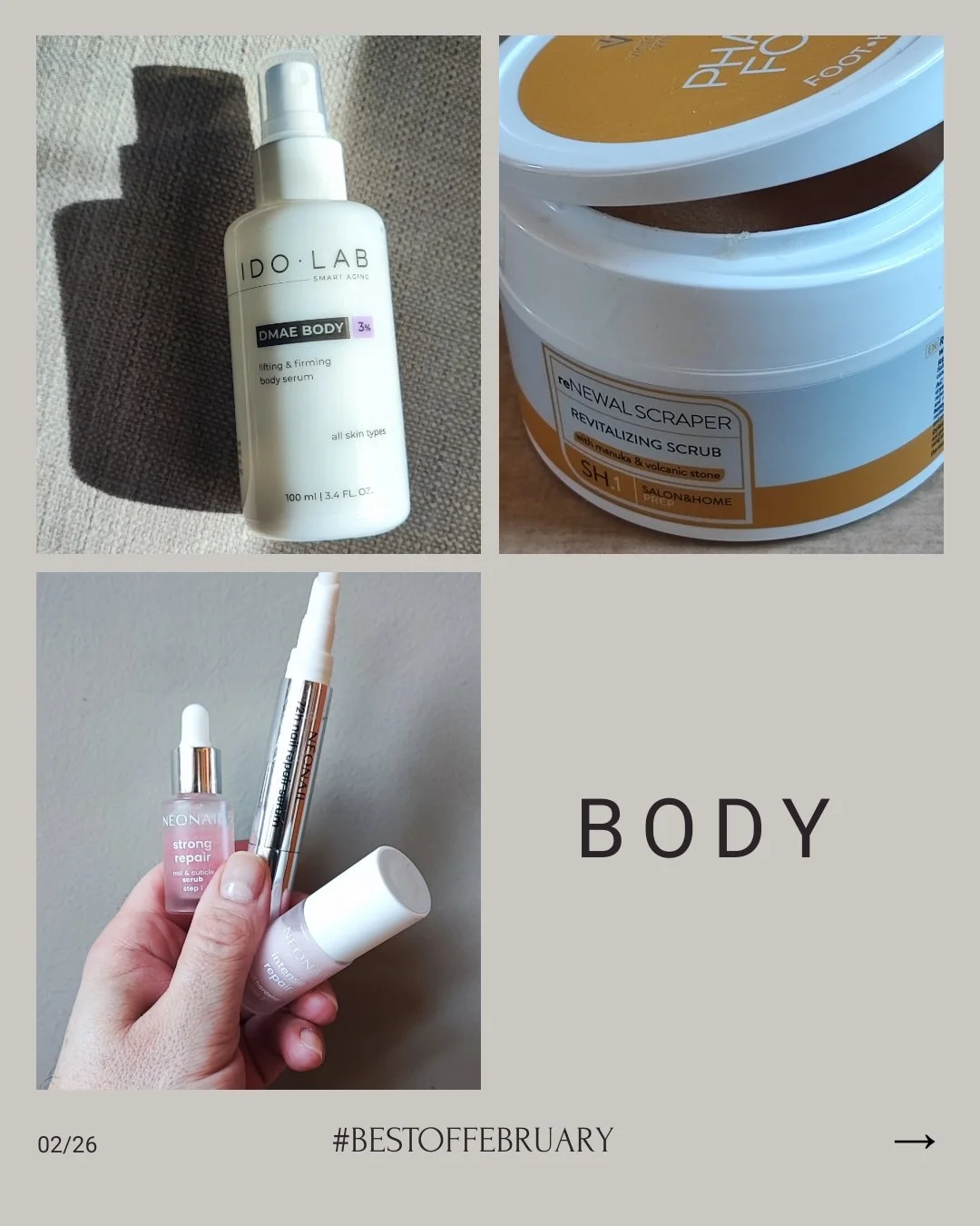 Rękawiczki już – mam nadzieję – na dobre zrzuciliśmy, niedługo przyjdzie pora na lżejsze buty, a nawet ich brak. Dlatego coraz ważniejszy jest dla mnie wygląd moich dłoni i stóp. Kremów do rąk używam praktycznie przez okrągły rok, zmieniam tylko ich konsystencje. Paznokcie uwielbiam pielęgnować zestawem marki Neonail – Extreme Nail Repair. Składa się on z trzech etapów: peelingu do płytki paznokcia i skórek, odżywczego serum zmiękczającego w pisaku i utwardzającej odzywki w lakierze. To już mój trzeci zestaw, mogę więc z pełnym przeświadczeniem powiedzieć, że się sprawdza. Pod warunkiem oczywiście, że go regularnie stosujemy. Paznokcie stają się mocniejsze i zyskują ładny zdrowy połysk, skórki miękną i rzadziej się zadzierają. Duża polecajka! Na stopy z kolei nakładam scrub z nowej linii marki Pharm Foot z ekstraktem z miodu manuka. reNEWAL SCRAPER oprócz miodu zawiera także wyciąg z nagietka, witaminę C i kamień wulkaniczny odpowiedzialny za działanie ścierające. Bardzo fajnie wygładza. Stosuję go również do dłoni i łokci. Po zastosowaniu aplikuję krem z tej samej linii. Trzeci ulubieniec z kategorii BODY był sporym zaskoczeniem. Nowa dla mnie marka IDO LAB zgłosiła w konkursie LCA serum ujędrniające do ciała z DMAE, które ma formułę płynnej mgiełki w aerozolu. Gdy pierwszy raz go użyłem pomyślałem: ‘e tam, kolejna mgiełka do ciała, która nic nie robi!’. Jakże się myliłem! Ten delikatny płyn ma super moc! Błyskawicznie i genialnie wygładza, zagęszcza skórę i momentalnie poprawia jej wygląd. A do tego jest tak prostu w użyciu, że - gdyby się uprzeć – nawet nie trzeba go wsmarowywać. Na pewno kupię kolejną butelkę!